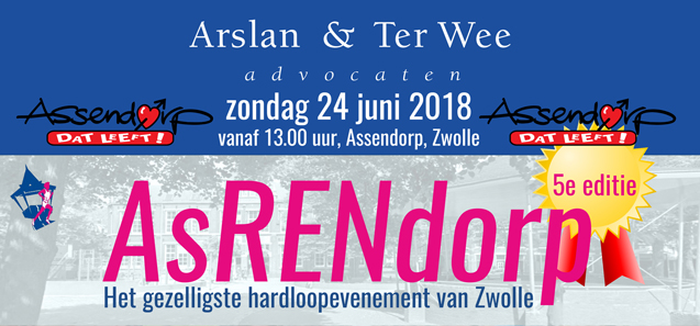 Advocatenbureau Arslan en Ter Wee uit Zwolle zal de hoofdsponsor zijn van de vijfde editie van de AsRENdorp. Het gezelligste hardloopevenement van Zwolle zal daardoor dit jaar de Arslan&TerWee AsRENdorp heten. Op donderdag 11 mei ondertekenden Ali Arslan, namens Arslan en Ter Wee advocaten en Joep Emmen, namens de stichting AsRENdorp het contract.